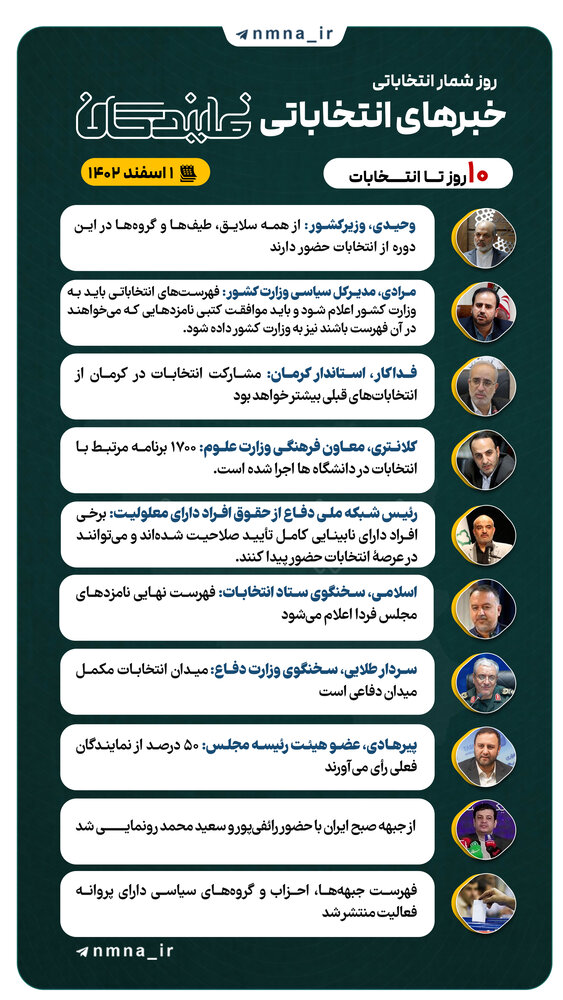 به گزارش نمایندگان، ۱۰  قدم مانده به طلوع یازدهم اسفند روز برگزاری انتخابات مجلس شورای اسلامی و خبرگان رهبری خبرها از تأیید صلاحیت تعدادی از نامزدهای معلول نمایندگی حکایت دارد.