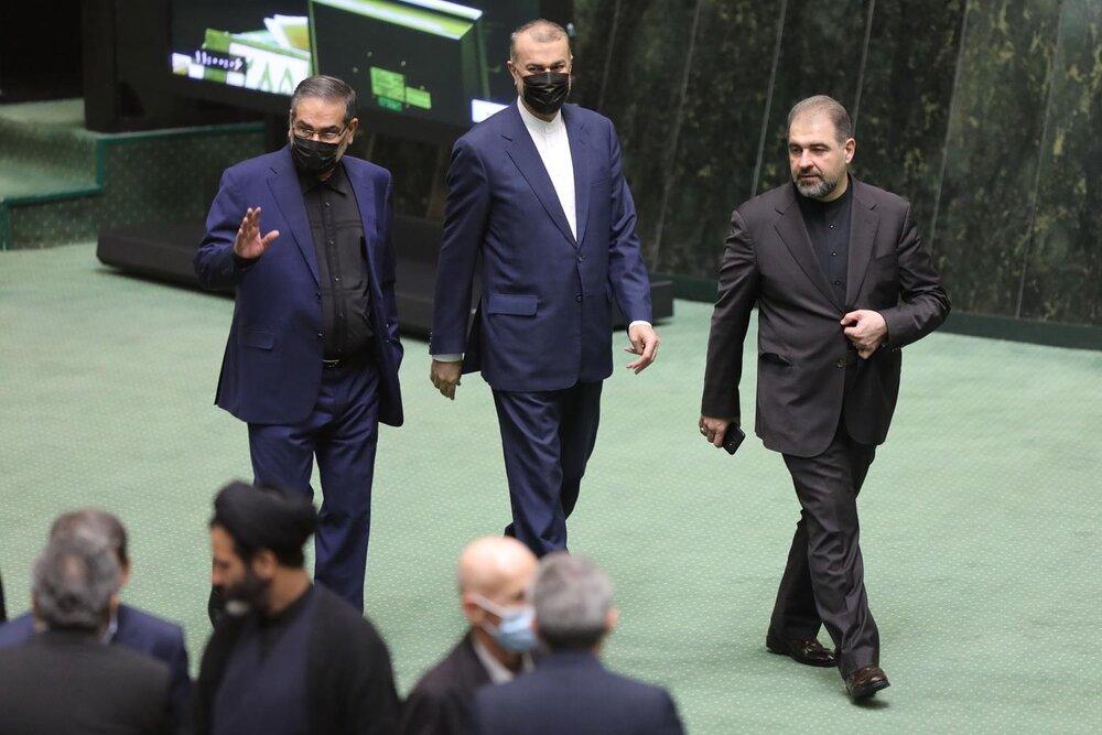 حضور علی باقری کنی و امیر عبداللهیان به همراه علی شمخانی در جلسه غیر علنی محلس شورای اسلامی به منظور گزارش از روند مذاکرات احیای برجام